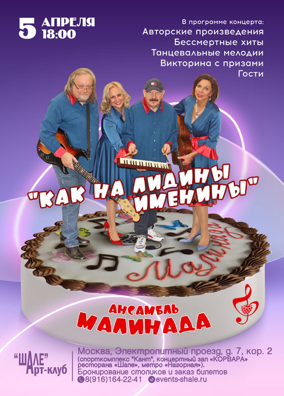 Авторские произведения Бессмертные ХИТЫ Танцевальные мелодии Викторина с призами Гости Сцена: арт клуб "Шале"